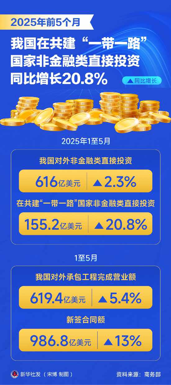 前5个月我国在共建“一带一路”国家非金融类直接投资同比增长20.8%