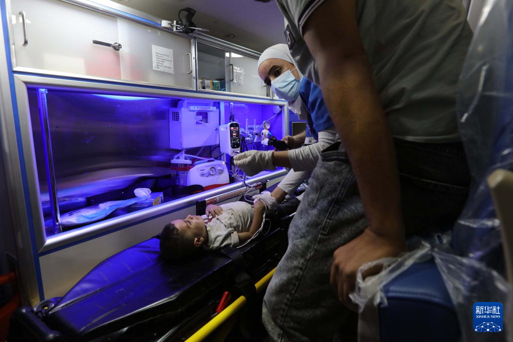 7月16日,一名加沙患病儿童抵达约旦侯赛因国王桥边境口岸。