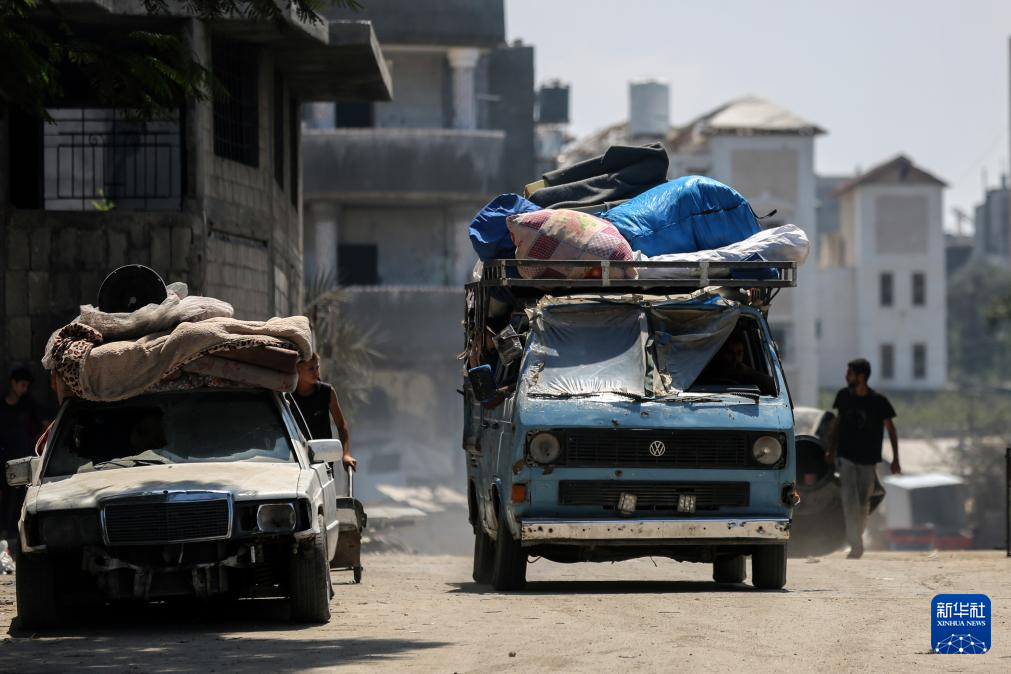 8月22日,巴勒斯坦民众携带物品驾车离开加沙城向南撤离。
