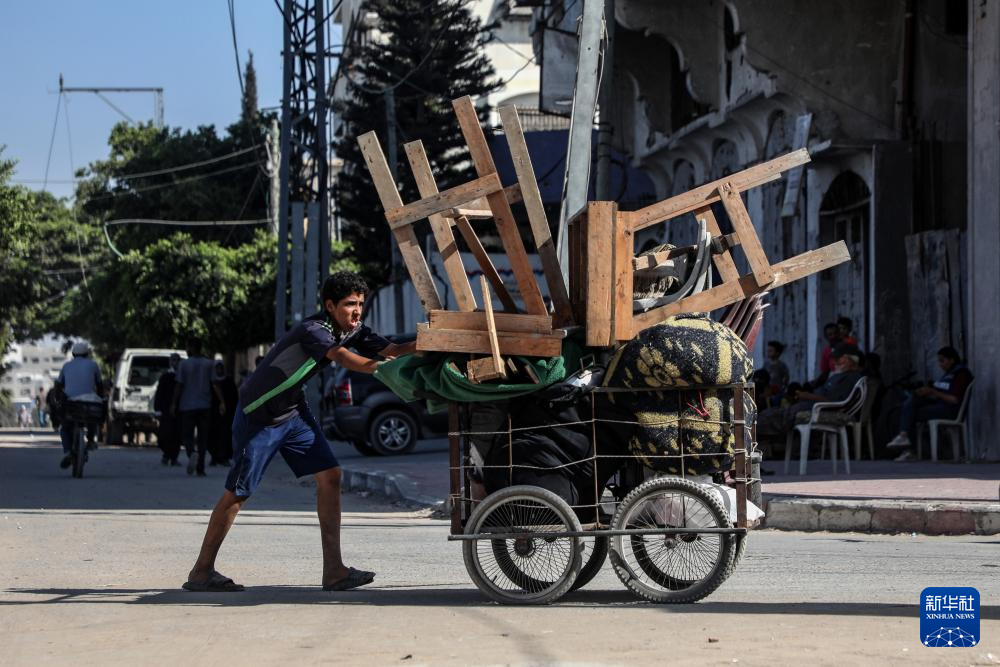 9月6日,巴勒斯坦人携带家当逃离加沙城。