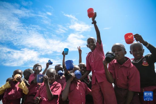 这是9月1日在位于肯尼亚西南部纳罗克郡的光明小学拍摄的吃午饭的学生们。