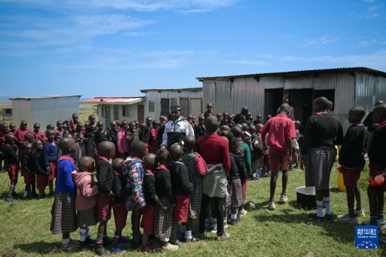 9月1日,在位于肯尼亚西南部纳罗克郡的光明小学,学生们排队等候领取午餐。
