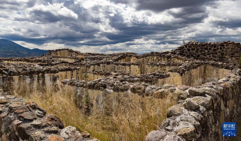 这是9月17日在墨西哥瓦哈卡州亚古尔遗址拍摄的宫殿遗迹。
