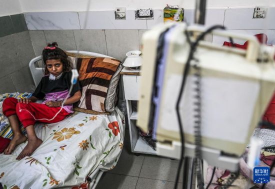 6月2日,在加沙城一所医院里,一名儿童正在接受治疗。新华社发(里泽克·阿卜杜勒贾瓦德摄)