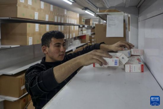 4月17日,在加沙城一处药品仓库,一名工作人员对药品进行分类。新华社发(里泽克·阿卜杜勒贾瓦德摄)