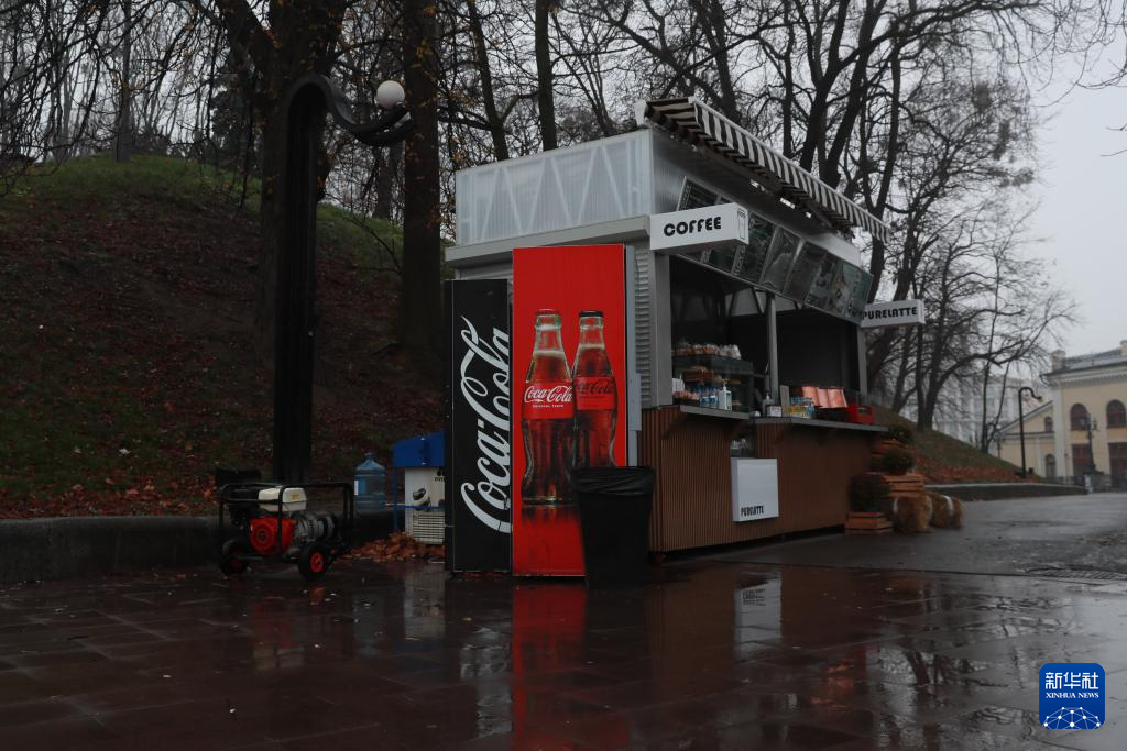 11月20日,乌克兰首都基辅主要街道的照明设施出现大面积停电,街头的饮品摊位利用自备发电机供电。