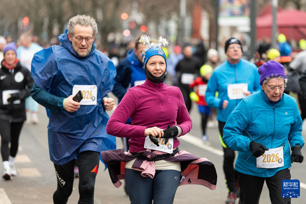 2026年1月1日,人们在德国首都柏林的菩提树下大街参加新年跑活动。