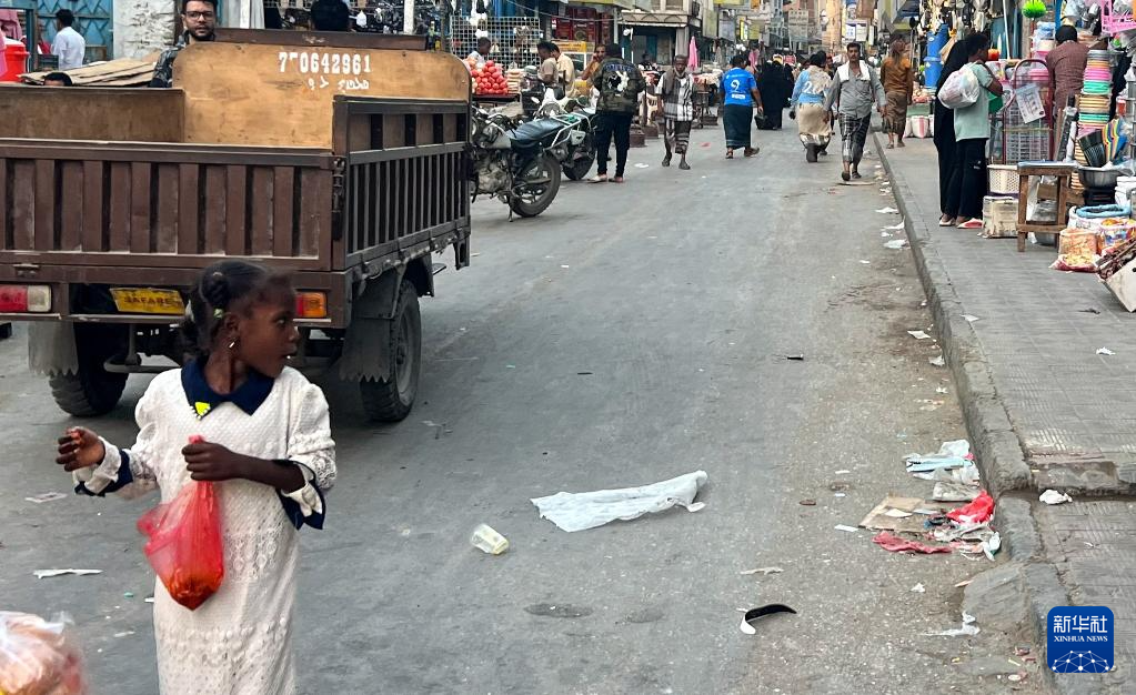 1月6日,在也门哈德拉毛省穆卡拉市,人们在街上购物。