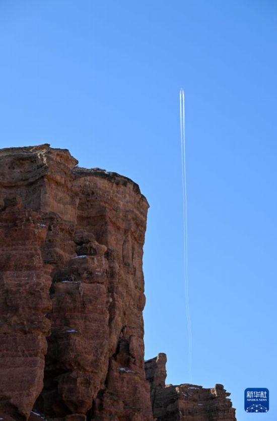 1月30日,在哈萨克斯坦阿拉木图州,一架飞机从恰伦峡谷上空飞过。