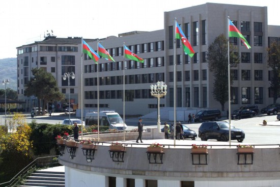 这是2025年10月15日在阿塞拜疆卡拉巴赫地区汉肯德市拍摄的新政府办公楼。新华社记者陈俊锋摄