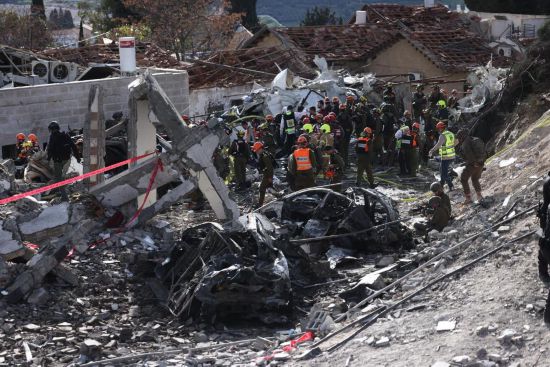 这是3月1日在耶路撒冷西部城镇贝特谢梅什拍摄的导弹袭击现场。新华社发(贾马尔·阿瓦德摄)